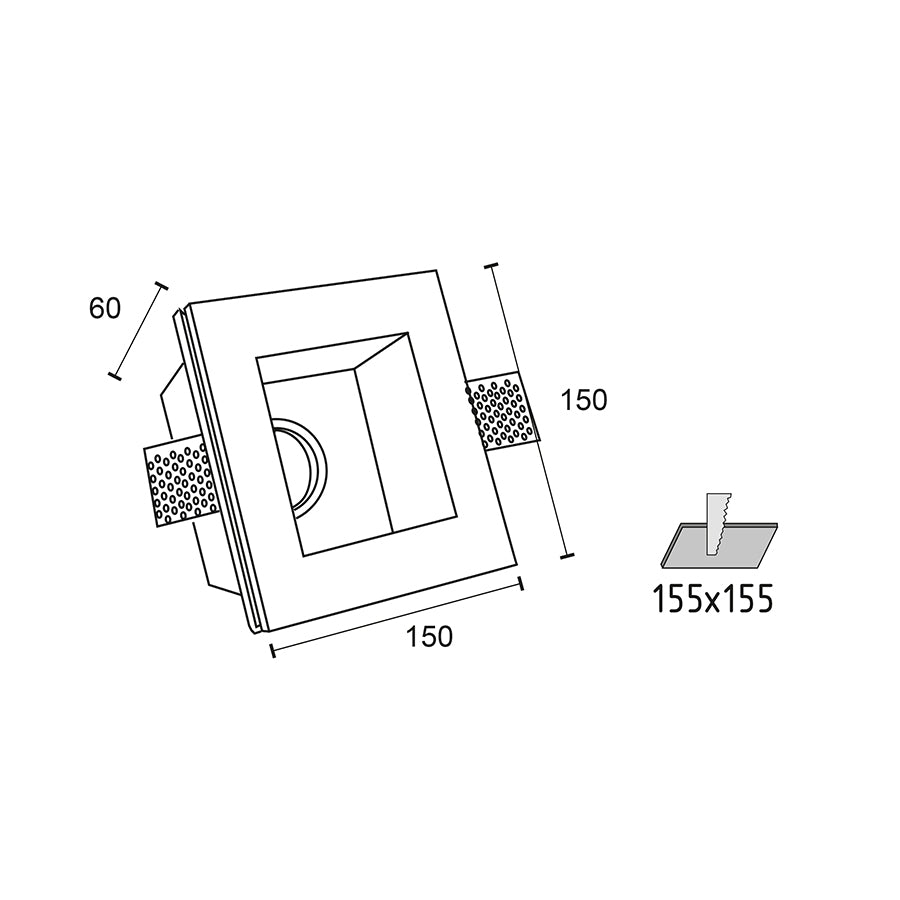 Faretto da incasso in gesso verniciabile 7W GU10 – 150x150 mm