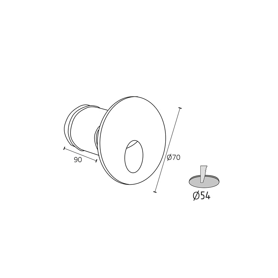 Si collega direttamente alla rete elettrica a 220-240V~ e presenta un grado di protezione IP54, che lo rende adatto per applicazioni esterne come vialetti, facciate, muretti e gradinate.