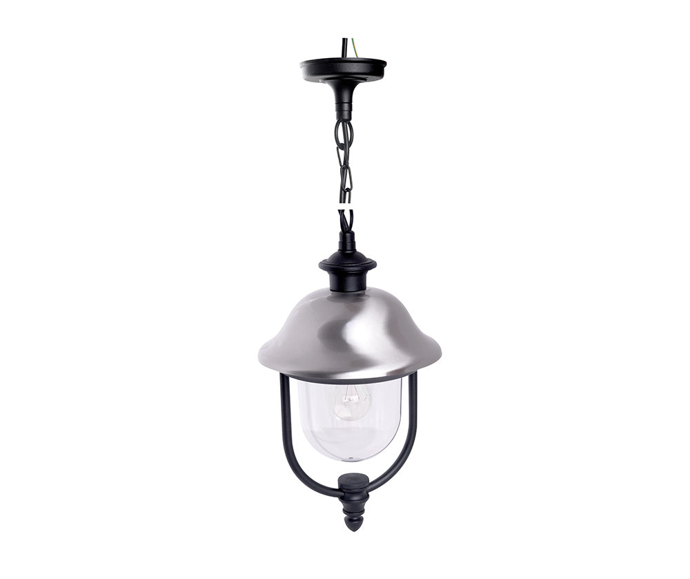 lanterna da esterno dal design moderno con base di appoggio e cappello in acciaio, ideale per illuminare vialetti, colonne o zone d’ingresso. La struttura in alluminio pressofuso offre resistenza e durata nel tempo, mentre il diffusore in policarbonato trasparente assicura una luce chiara e diffusa. Compatibile con lampadine E27 fino a 100W. Grado di protezione IP44.